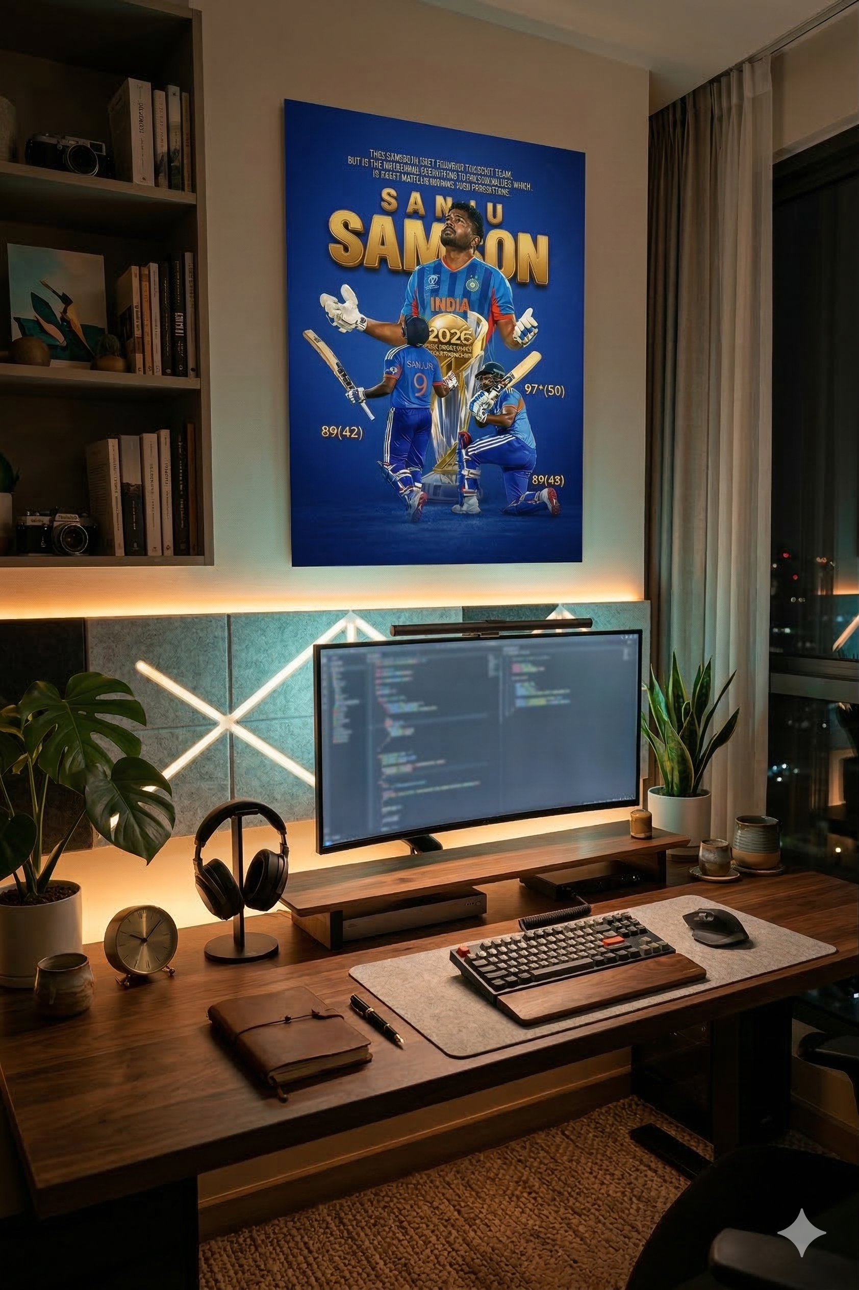 One of India's most explosive batsmen ā Sanju Samson ā immortalized in this stunning T20 World Cup 2026 poster. Featuring his iconic innings of *89(42), 97(50), and 89(46)**, this poster captures the raw power and persistence that defines Samson's game.